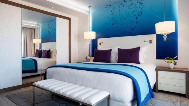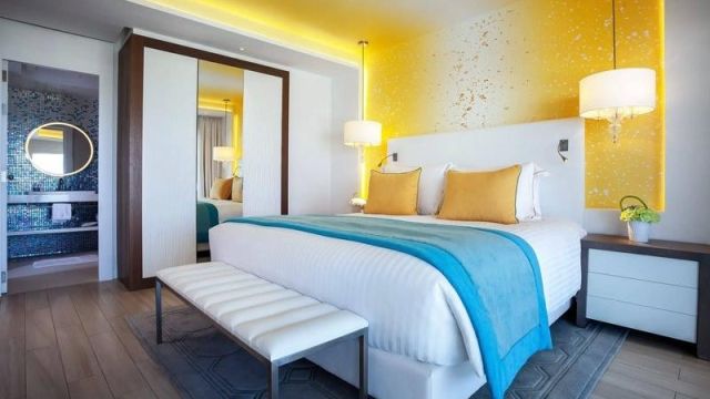 The hotel has a total of 130 rooms and suites, including 26 executive rooms, 62 deluxe rooms, 28 superior rooms, 4 Bahia suites, 4 prestige suites, and 6 deluxe suites. Each room comes with a private balcony, offering guests a personal space to relax and enjoy the surroundings. The rooms are thoughtfully and comfortably furnished, drawing inspiration from the sea for their design elements.